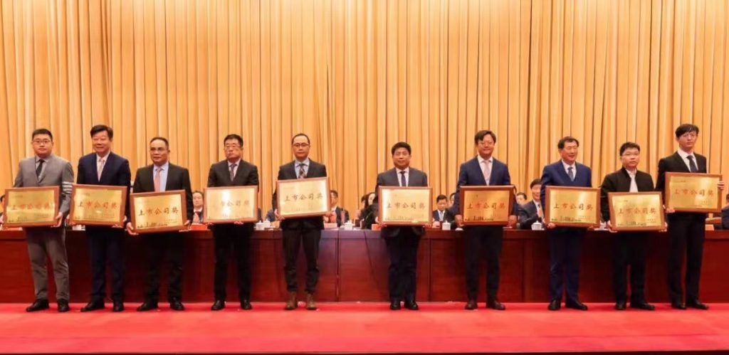 ? ? ? 2月7日上午,市委、市政府召開市產(chǎn)業(yè)發(fā)展大會,全面落“532”發(fā)展戰(zhàn)略,堅持制造立市、產(chǎn)業(yè)強市、質(zhì)量興市,加快打造長三角產(chǎn)業(yè)中軸,奮力建設國際化智造名城。我司以及同惠電子、中英科技、易電行、蘇文電能、晶雪股份、宏微科技、匠心家居、華潤化學、卡姆丹克等2021年新增的10家上市公司榮獲“上市公司獎”并上臺接受表彰。此外,我司入圍了工業(yè)三星級企業(yè)的名單,董事長楊森茂先生還榮獲了“明星企業(yè)家”的稱號。